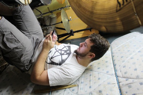 IMG_06102) Id-drummer tagħna għandu saqqu warajh – għal raġunijiet ta’ soundproofing u ta’ kumdita’ (ovvjament). Allura jekk toħodlu ritratt u ddawru skoprejt li jiġi qisu mindud (badum tiss).