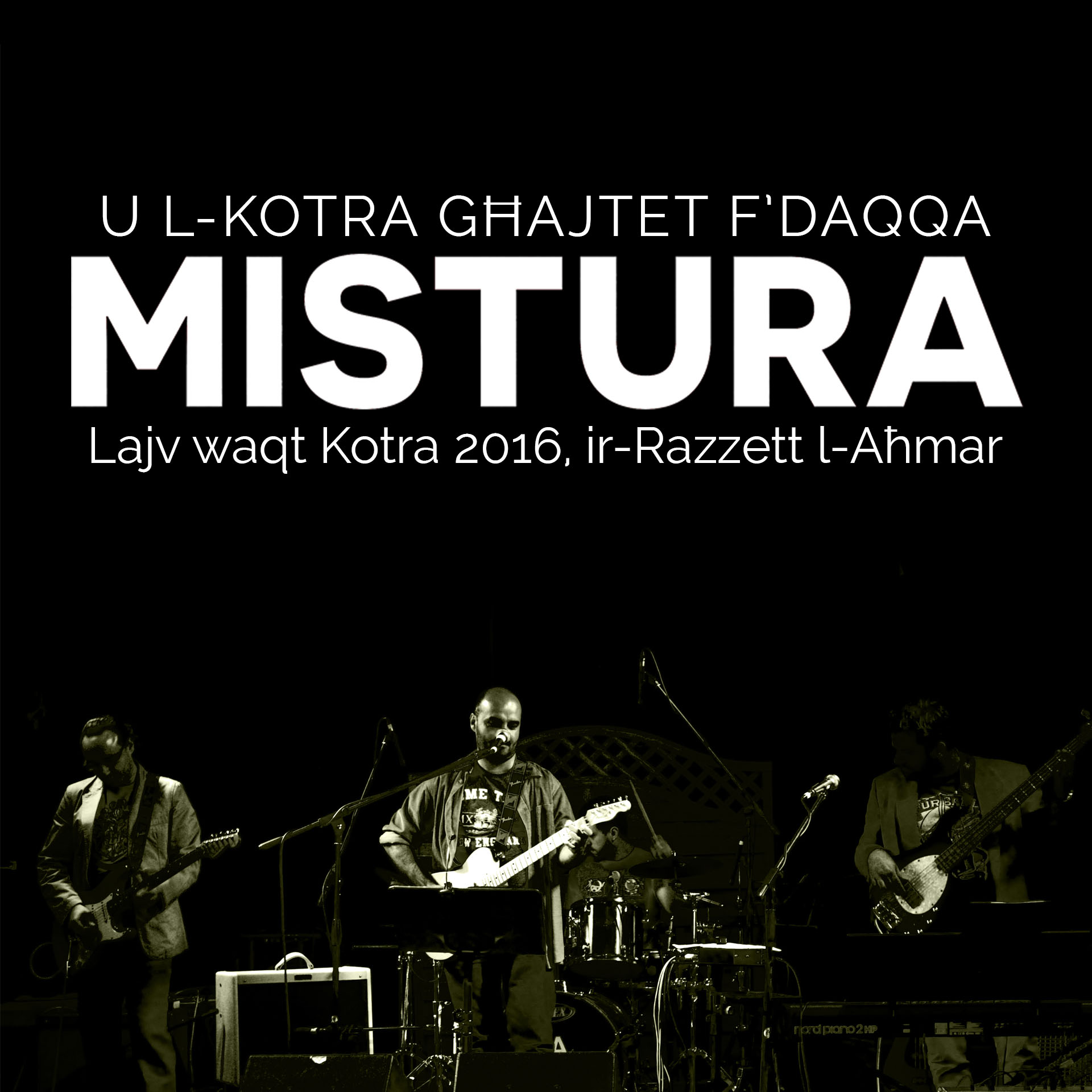 Il-grupp lokali Mistura għadhom kif ħarġu lajv album bl-isem “U l-Kotra Għajtet f’Daqqa – Mistura Lajv waqt Kotra 2016”. Dan l-album, li fih kanzunetti rrekordjati waqt “Kotra – Kunċert Kontra l-Kurrent” li seħħ Marzu li għadda, huwa l-ewwel wieħed ta’ din ix-xorta għal Mistura, li s’issa kienu ħarġu l-ewwel studio album tagħhom bl-isem “U d-Dinja Tkompli Ddur” fl-2014.