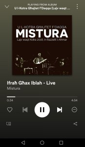 Local band Mistura announced that its three albums are now available and can be streamed online in their entirety on the apps of your choice. In fact all Mistura tracks released to date, amounting to 36 songs, are now found on Spotify, iTunes, YouTube Music, GooglePlay Music, Amazon Music, Deezer and a number of other apps that provide this kind of music streaming service. This includes the two studio albums “U d-Dinja Tkompli Ddur” (2014) and “Regħbus” (2018), together with a live album of a concert released as “U l-Kotra Għajtet f’Daqqa” (2016).